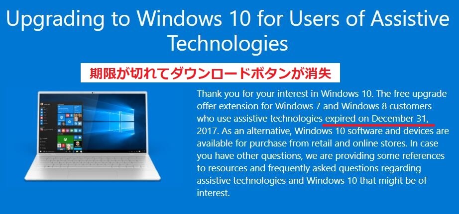 マイクロソフト公式サイト windows10アップグレード ←期限切れ